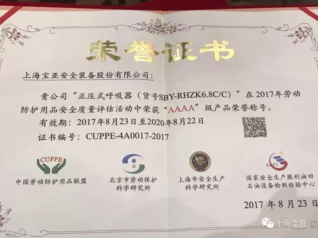 8月22日下午,由中國勞動保護用品聯(lián)盟主辦的追蹤溯源產品評比活動中,寶亞的呼吸保護類產品獲得4A級產品6件及3A級產品4件,主辦方對獲獎企業(yè)進行了現場頒獎活動。