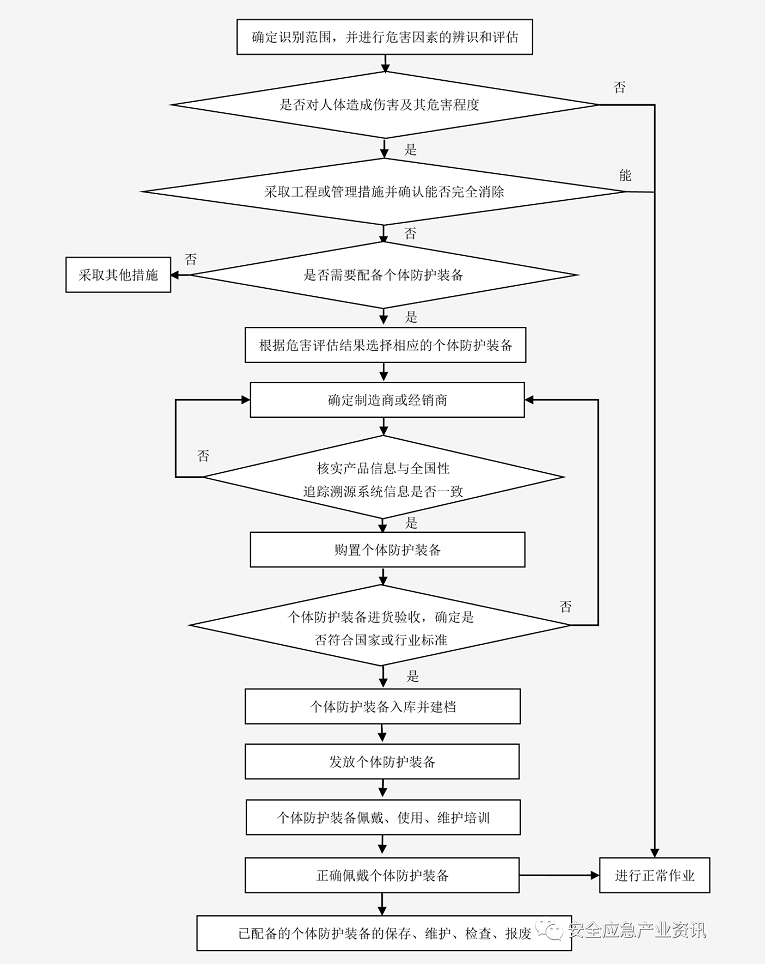 該標準規(guī)定了個體防護裝備(即勞動防護用品)配備的總體要求,包括配備原則、配備流程、作業(yè)場所危害因素的辨識和評估、個體防護裝備的選擇、追蹤溯源、判廢和更換、培訓(xùn)和使用等。