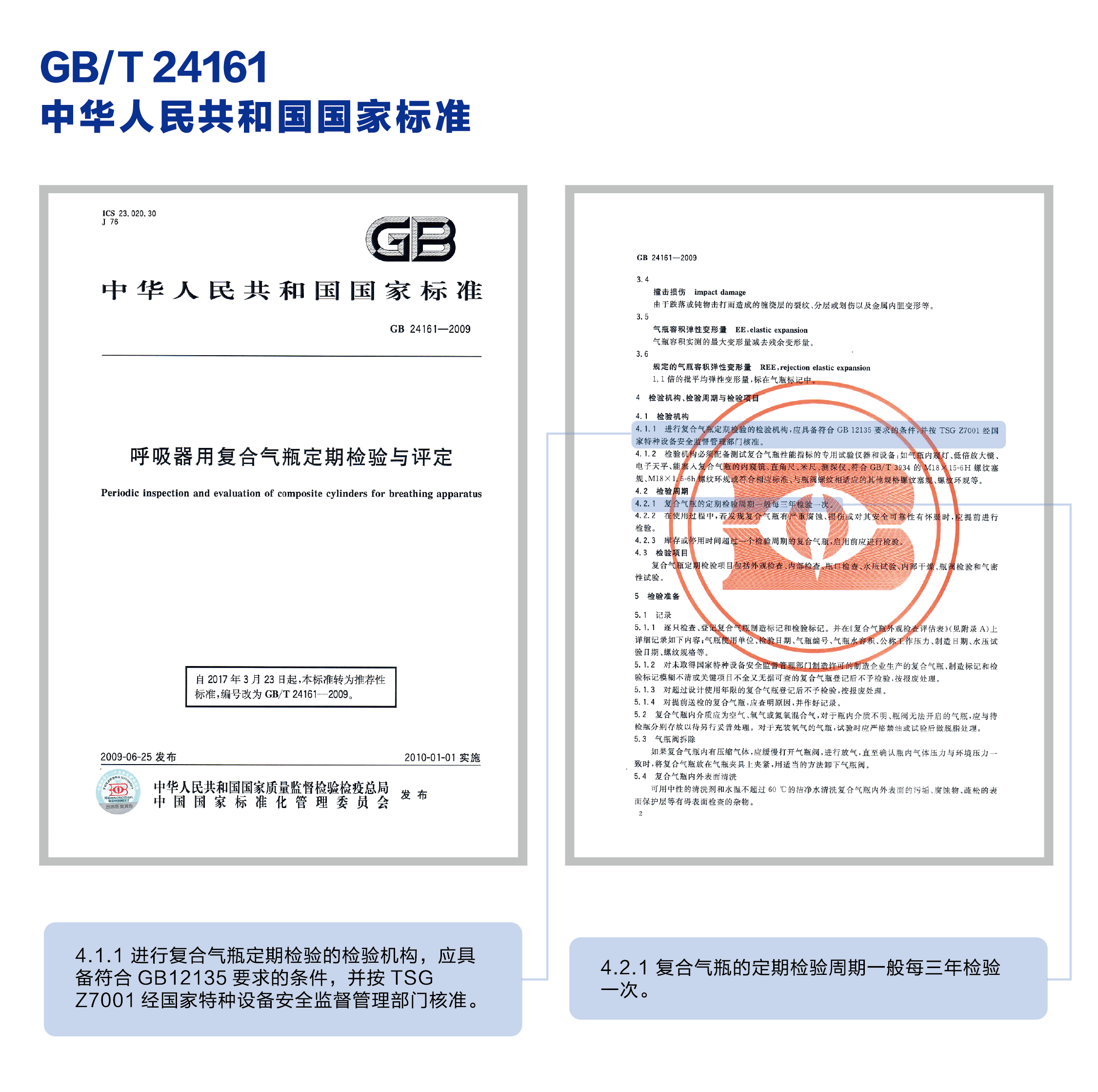 1.依據(jù)GB/T24161-2009《呼吸器用復(fù)合氣瓶定期檢驗(yàn)與評(píng)定》標(biāo)準(zhǔn)要求,氣瓶每三年須檢測(cè)一次。