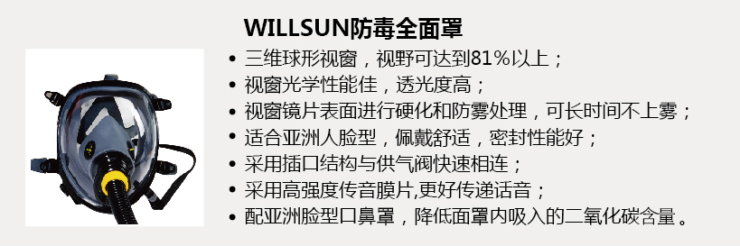 2. 主要由送風(fēng)主機(jī)、波紋軟管、WILLSUN防毒全面罩、流量調(diào)節(jié)閥組成;