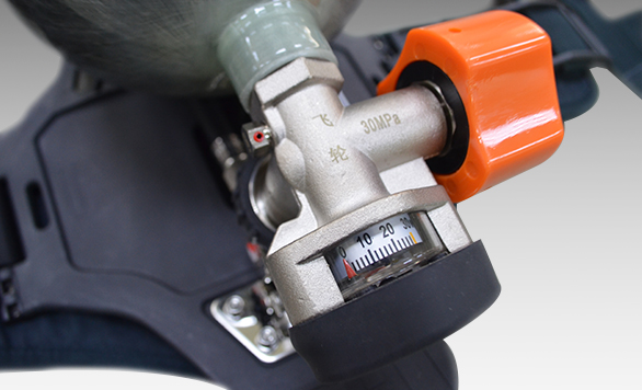 3. 氣瓶閥為右手全握式大三角型設計,防止打滑,便于戴消防手套時操作;